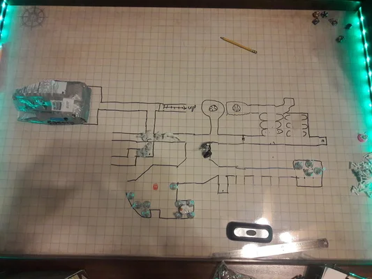 The party then discovered a goblin nest, and escaped death by pretending to be overseers. They continued to explore down the only remaining corridor, locating another garbage chute and a large mining operation populated by an uncountable number of goblins. Warin tripped over a secret door (literally). Within that hidden chamber were two living spaces, one occupied by a snoring human who appeared very familiar… he was the man who led the fish-creatures that attacked earlier and kidnapped their friends!