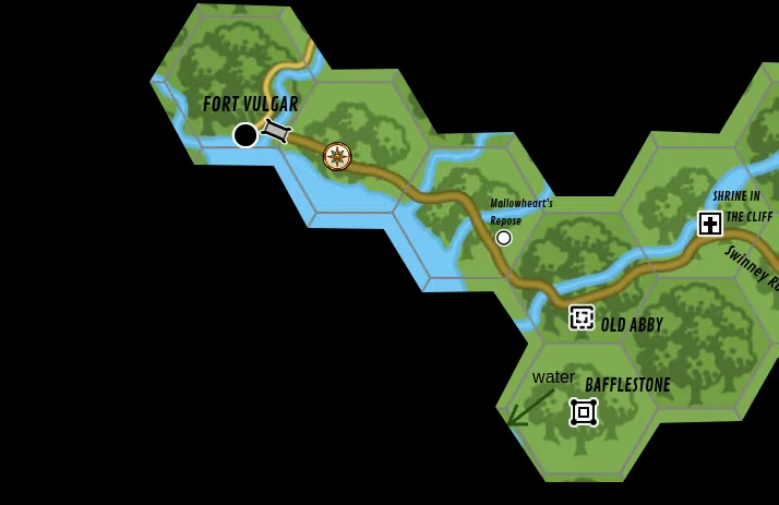 We made our next stop at the chapel of St Dougan, on the way to Fort Vulgar itself to meet Lord Osric. The priest there had not heard of the Pillar of Ambule, but he offered to look it up in his archives. For a small fee of 20 gold, of course. I paid the fee, having a hunch that this pillar might be more significant than was obvious at first glance. I did let him know that we might be traveling over the next few days, so we would return for the information later on. He did mention that his church has a modest collection of illustrated manuscripts and he is always looking to add to that collection. So if we run across any such things, he would be an excellent buyer.