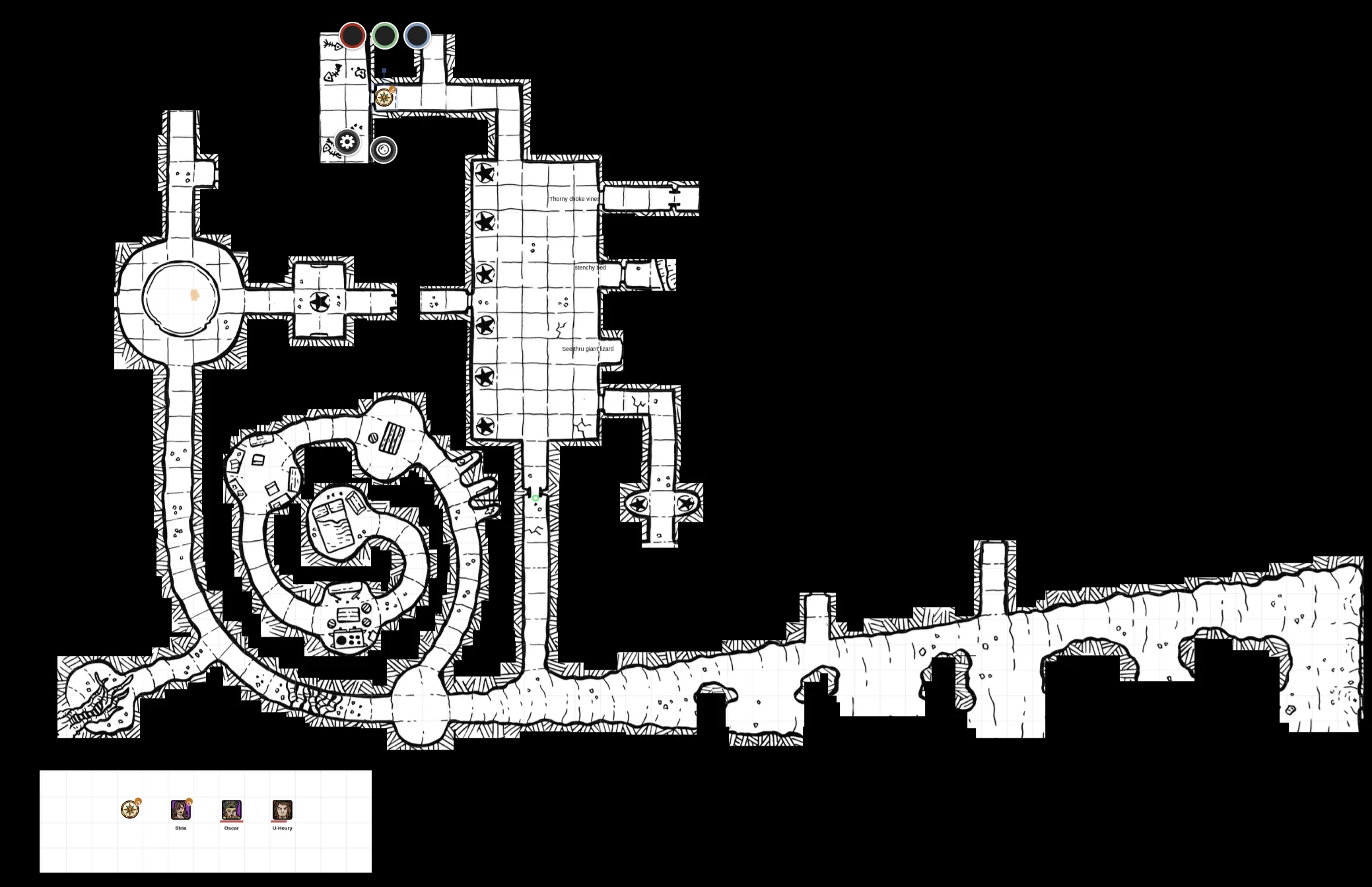 Some poking with u-Heury’s spear found the floor tiles that triggered the trap, which we marked with the skull and jumped over.