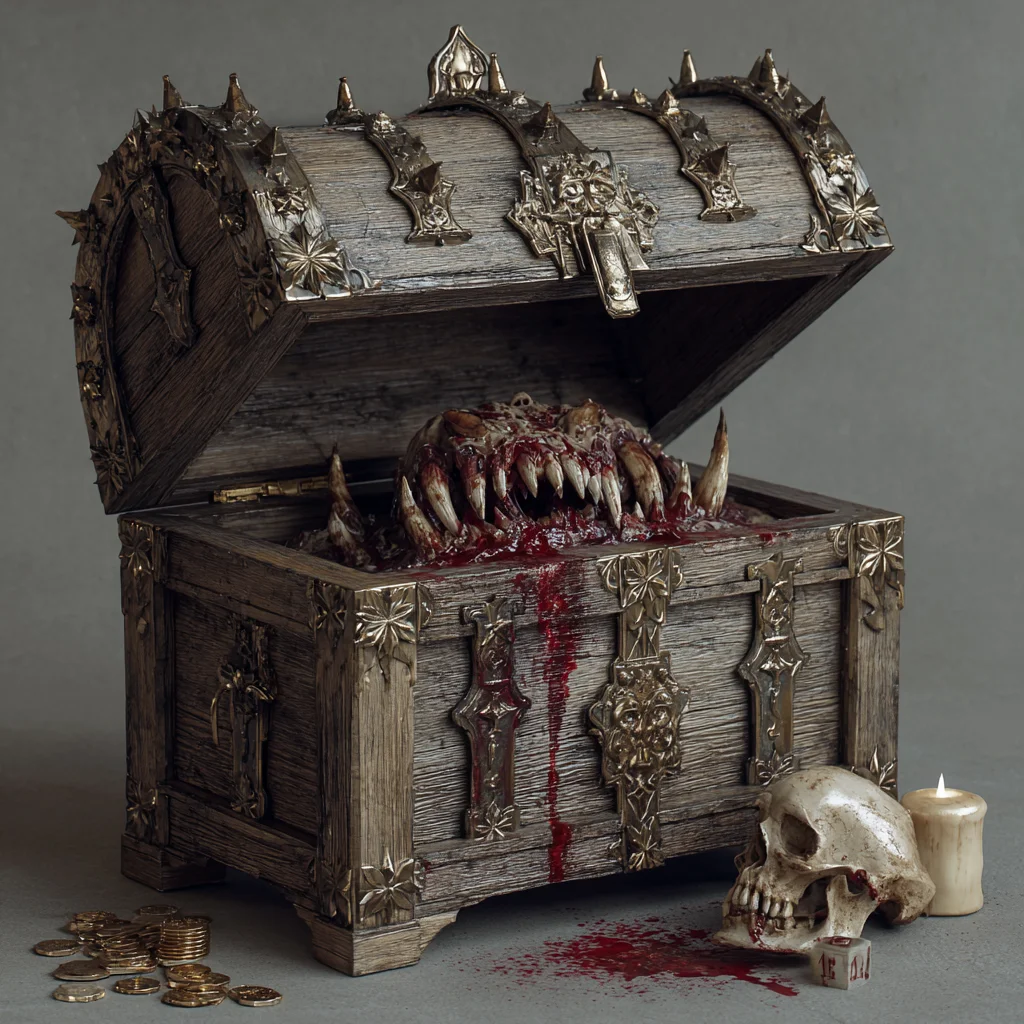 She was right to worry. The chest had barely reached the chamber’s entrance when it began to change. What had appeared to be wood and iron sprouted teeth and eyes and a lolling tongue that dripped with acidic saliva. The mimic’s true form was a nightmare of flesh and hunger, and it was not alone.